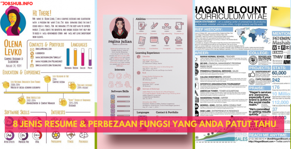 Terdapat 8 jenis resume asas yang boleh digunakan untuk memohon pekerjaan dan ia digunakan untuk tujuan yang berbeza dan anda perlu menentukan penggunaannya mengikut keadaan semasa.