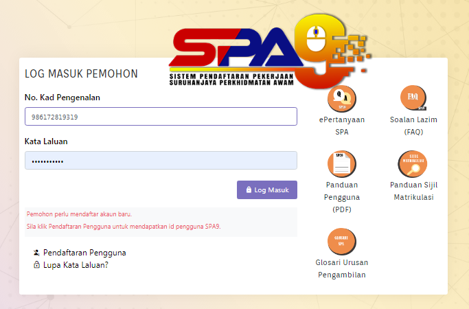 Slip Akuan Pendaftaran Permohonan Jawatan SPA akan dipaparkan yang mengandungi maklumat anda beserta senarai jawatan yang dimohon. Sila simpan dan cetak Slip Pendaftaran untuk kegunaan pada masa akan datang (terutama bagi bekas pelajar tajaan biasiswa).