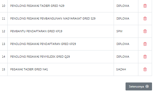Senarai jawatan dimohon dan maklumat lengkap anda akan dipaparkan untuk pengesahan. Jika semua maklumat betul, klik Seterusnya.
