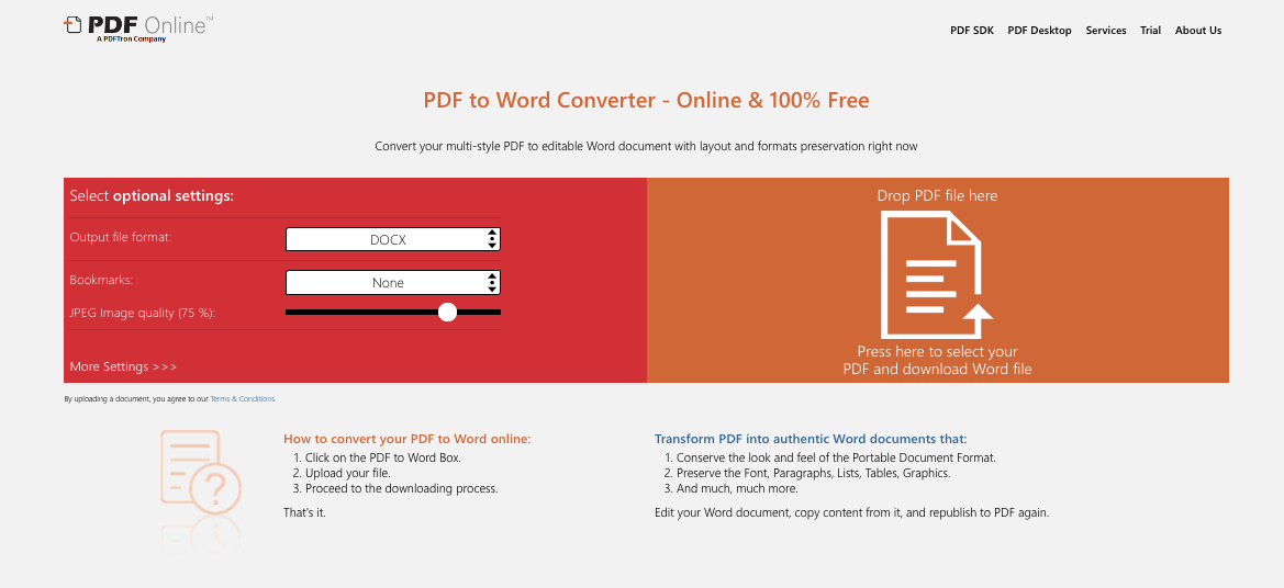 - Layari pautan ini : https://www.pdftoword.com/en/