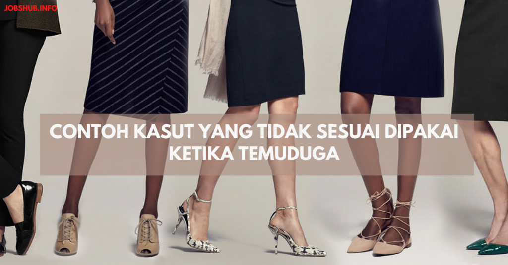 Mengapa mesti kasut yang bertumit? Ia menujukan betapa profesionalnya seorang calon dalam berurusan dan ketika berhadapan dengan penemuduga. Jangan lupa, pakai sarung kaki yang bersesuaian.