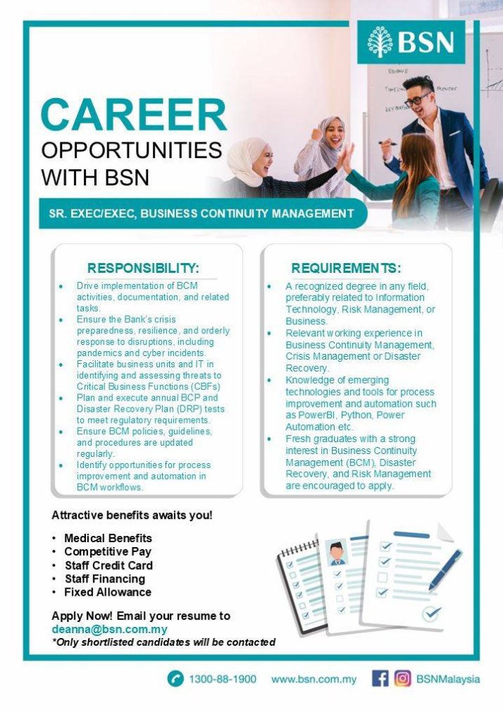 Ikaln Kini Bank Simpanan Nasional (BSN) ~ Jawatan Kosong Senior Executive/Executive, Business Continuity Management