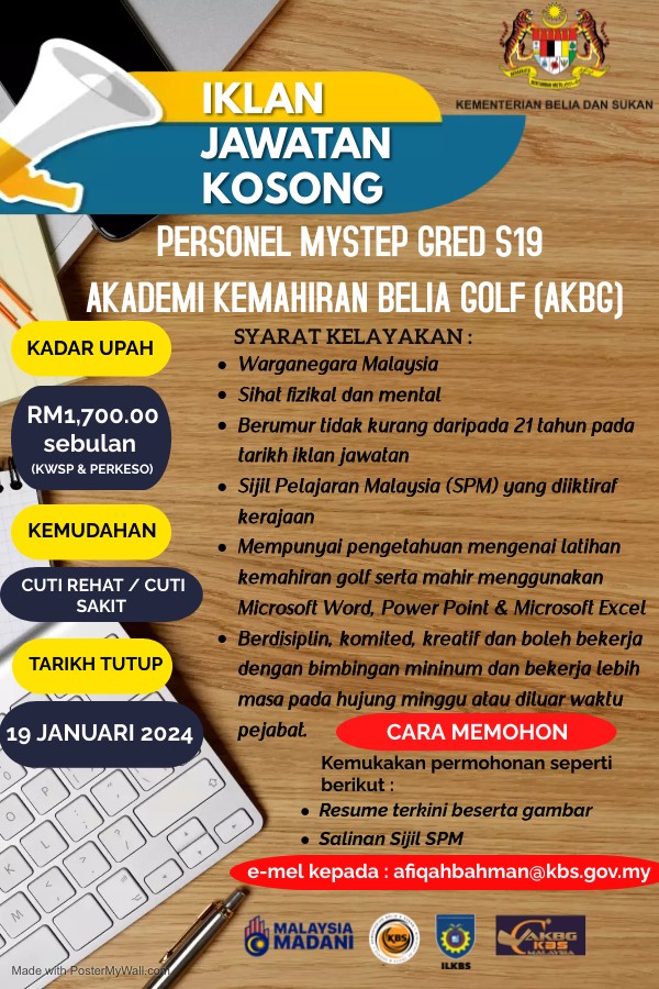Iklan Jawatan Akademi Kemahiran Belia Golf (AKBG), Kementerian Belia Dan Sukan (KBS)