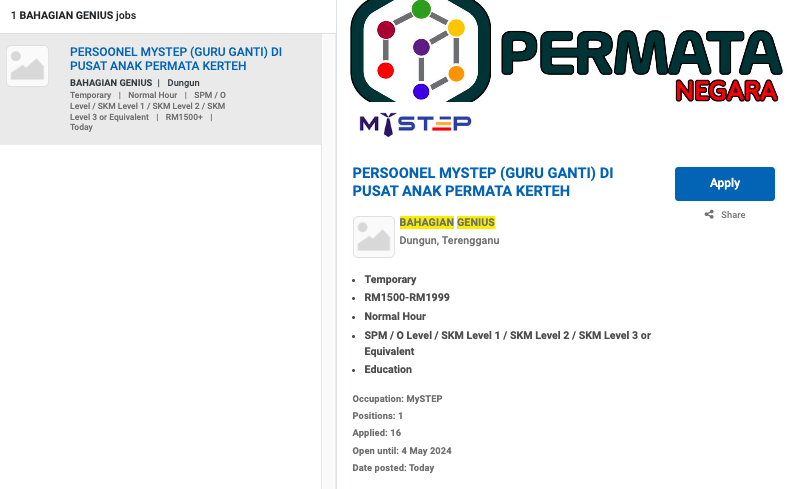 Iklan Jawatan Bahagian Genius, Kementerian Pendidikan Malaysia
