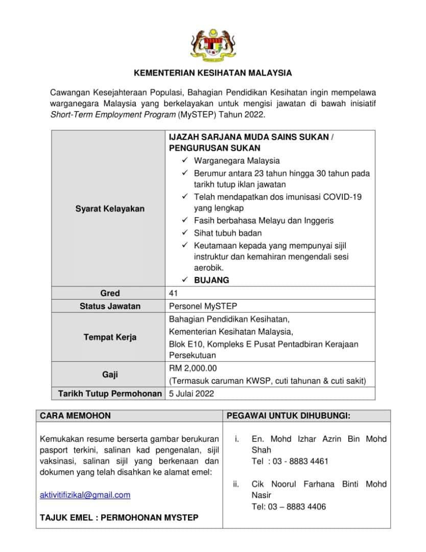 Iklan Jawatan Bahagian Pendidikan Kesihatan Kementerian Kesihatan Malaysia