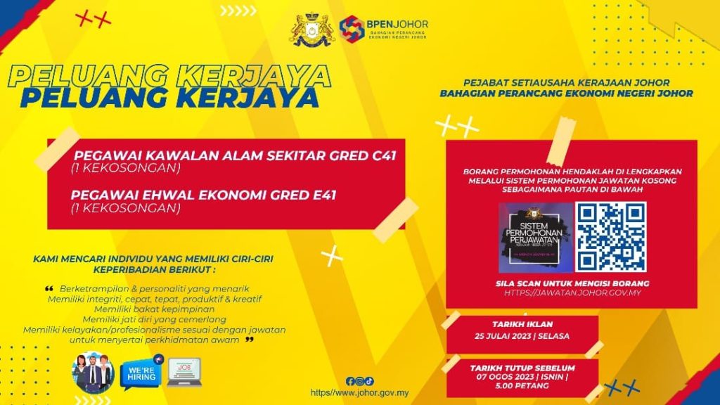 Iklan Jawatan Bahagian Perancang Ekonomi Negeri Johor