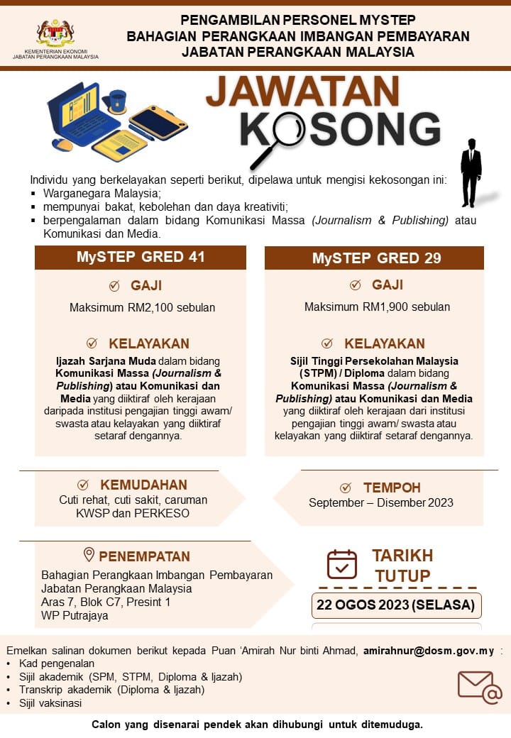 Iklan Jawatan Bahagian Perangkaan Imbangan Pembayaran, Jabatan Perangkaan Malaysia