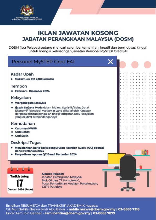 Iklan Jawatan Bahagian Perangkaan Tenaga Manusia & Sosial, Jabatan Perangkaan Malaysia