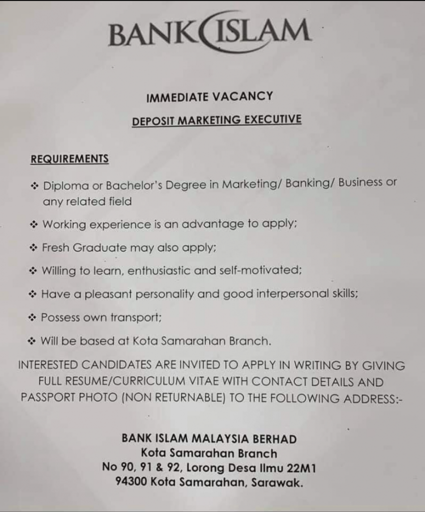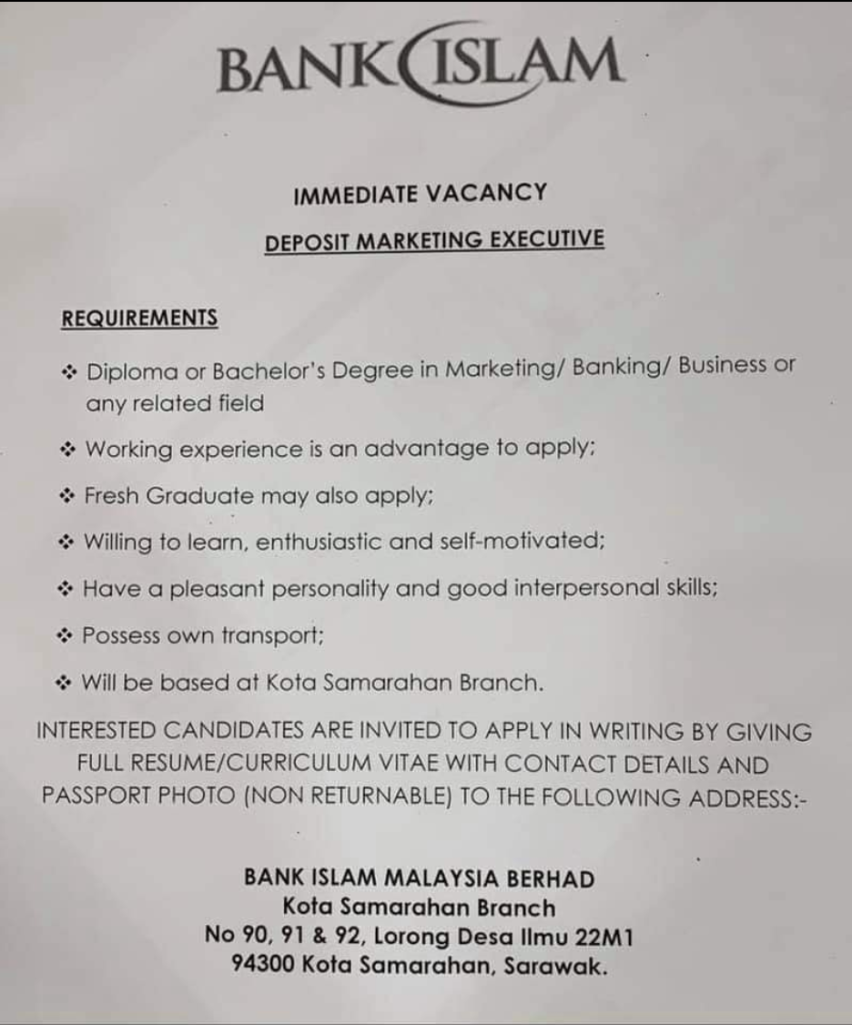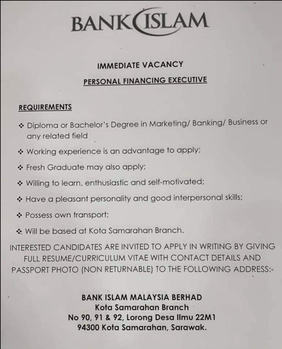 Iklan Jawatan Bank Islam Berhad Malaysia (BIMB)