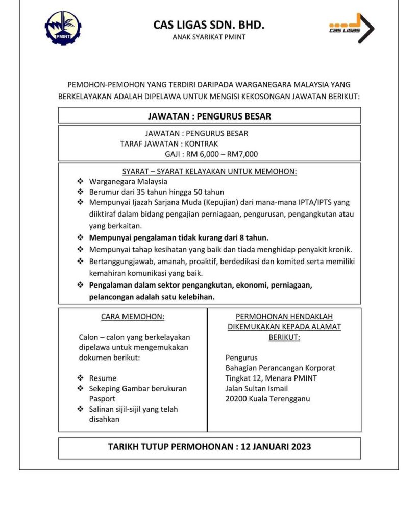 Iklan Jawatan Cas Ligas Sdn Bhd