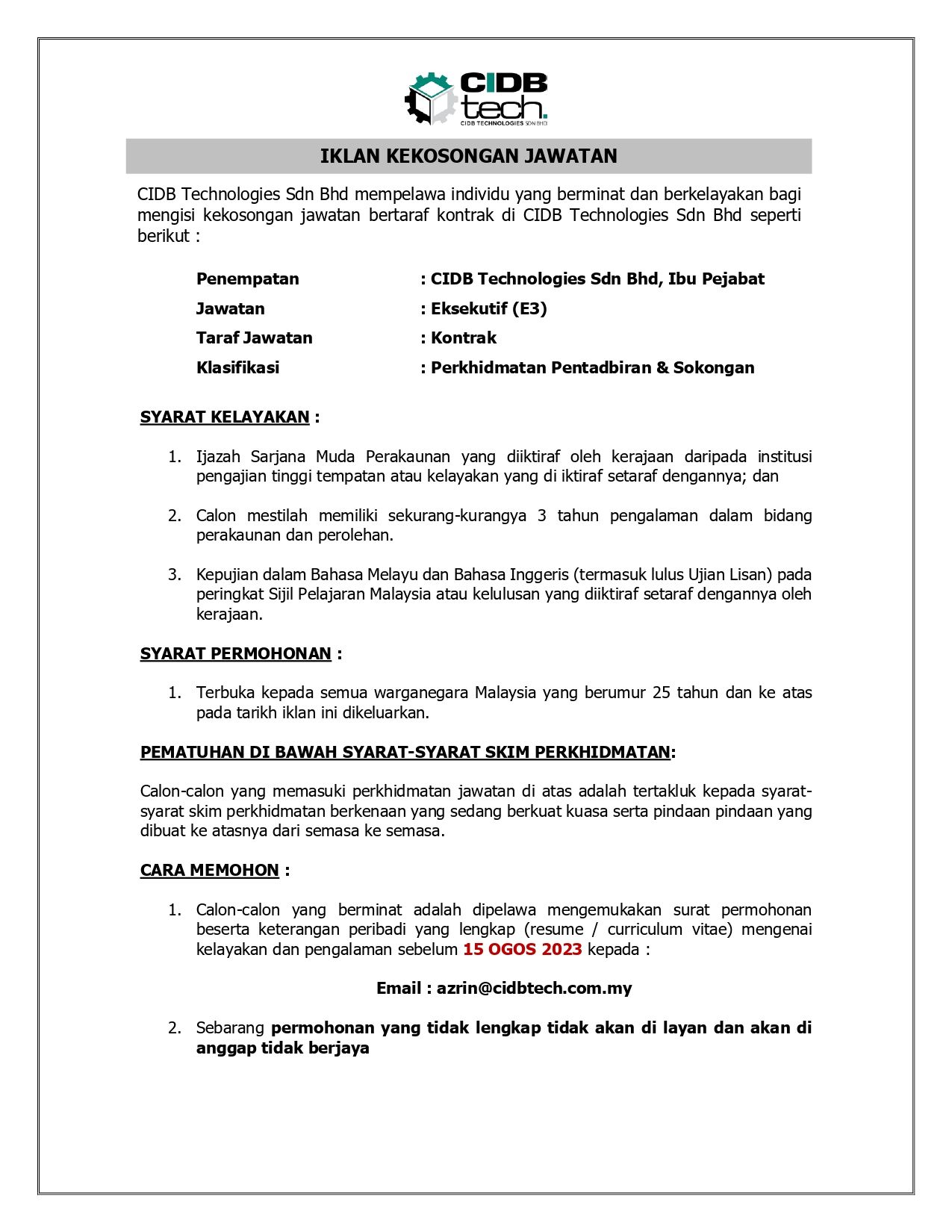 Iklan Jawatan CIDB Technologies Sdn Bhd