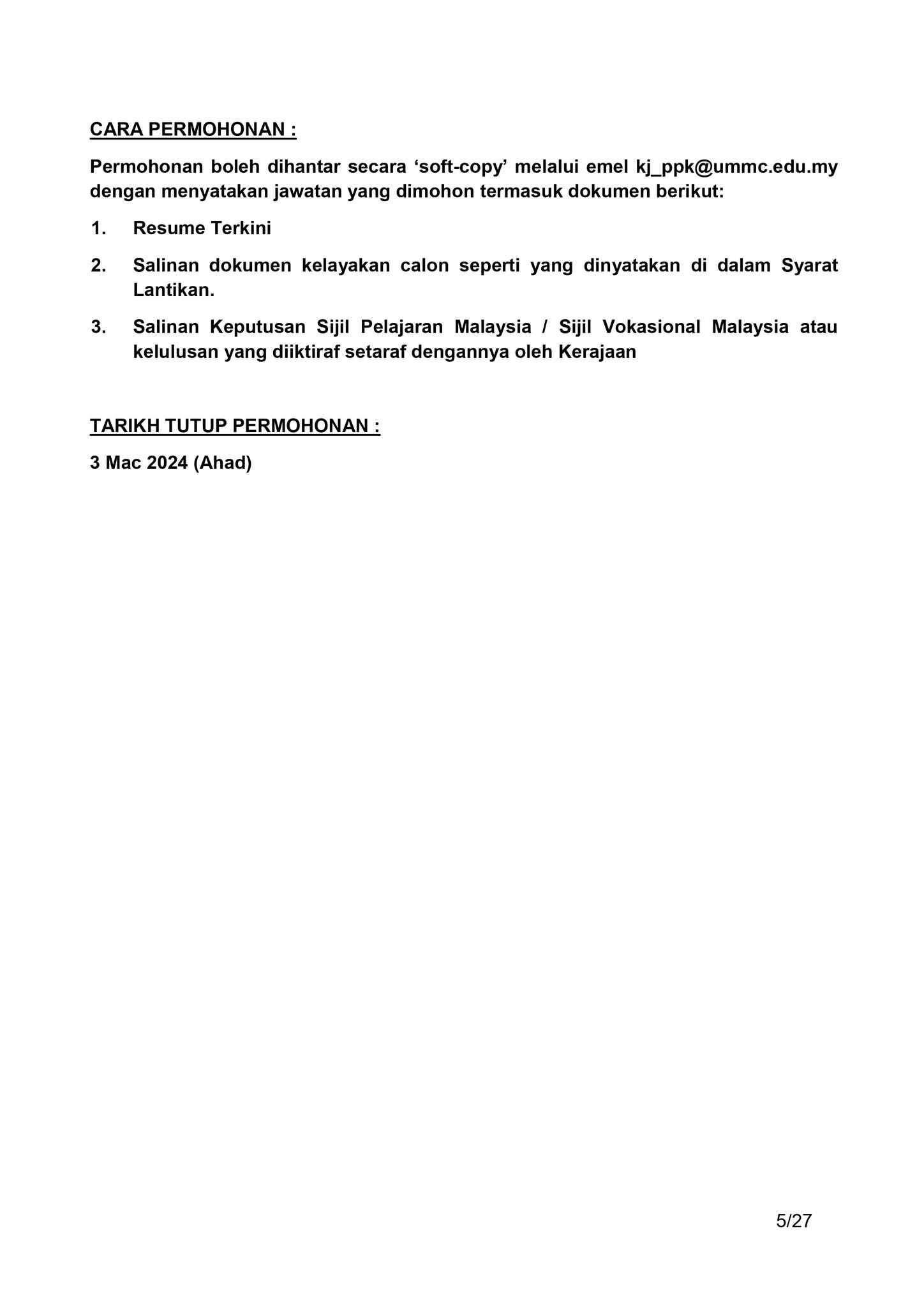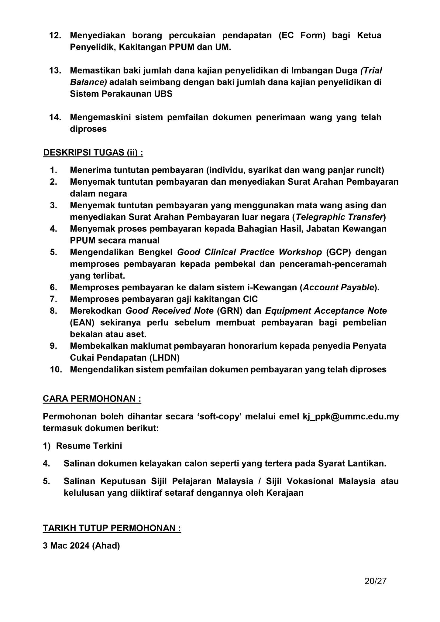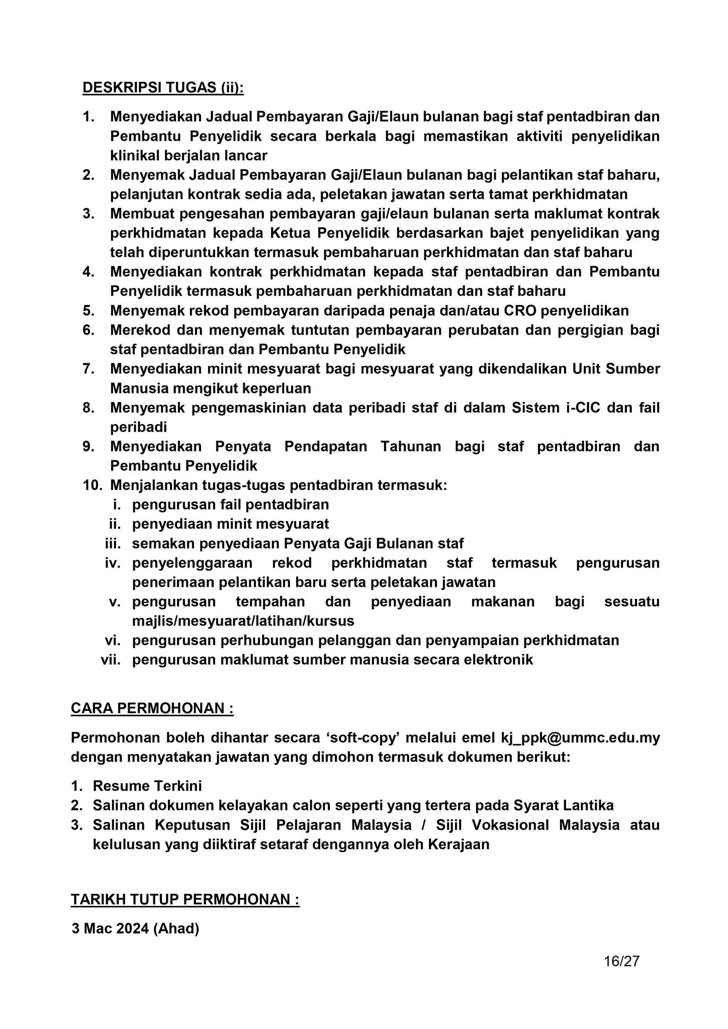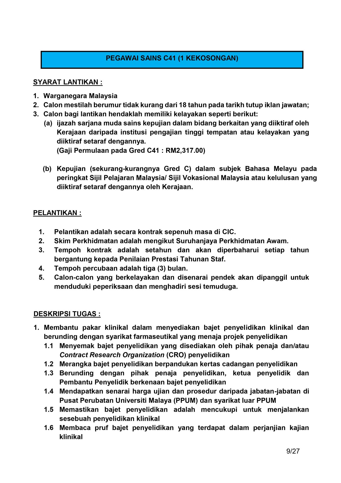 Iklan Jawatan Clinical Investigation Centre (CIC) University Of Malaya Medical Centre