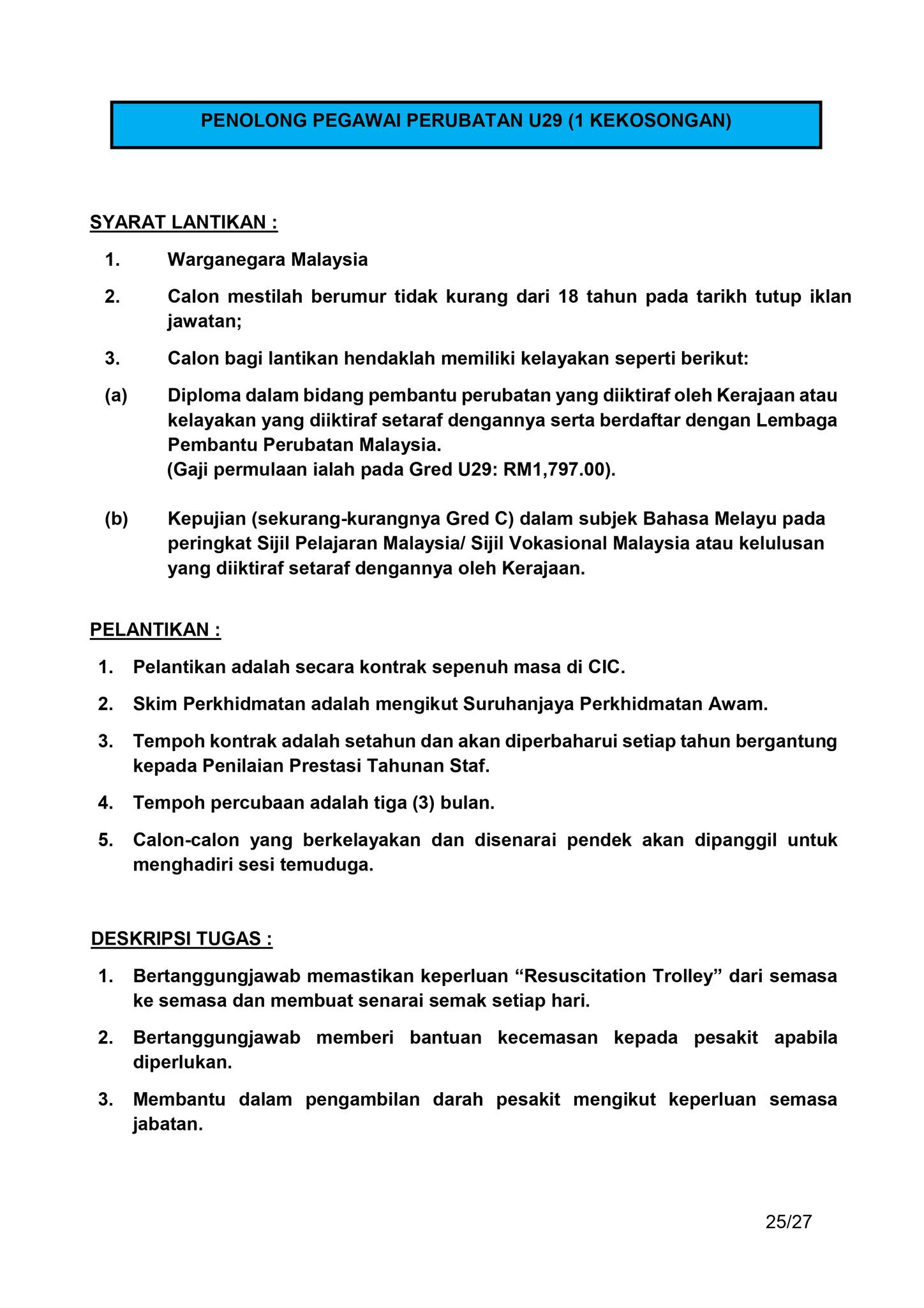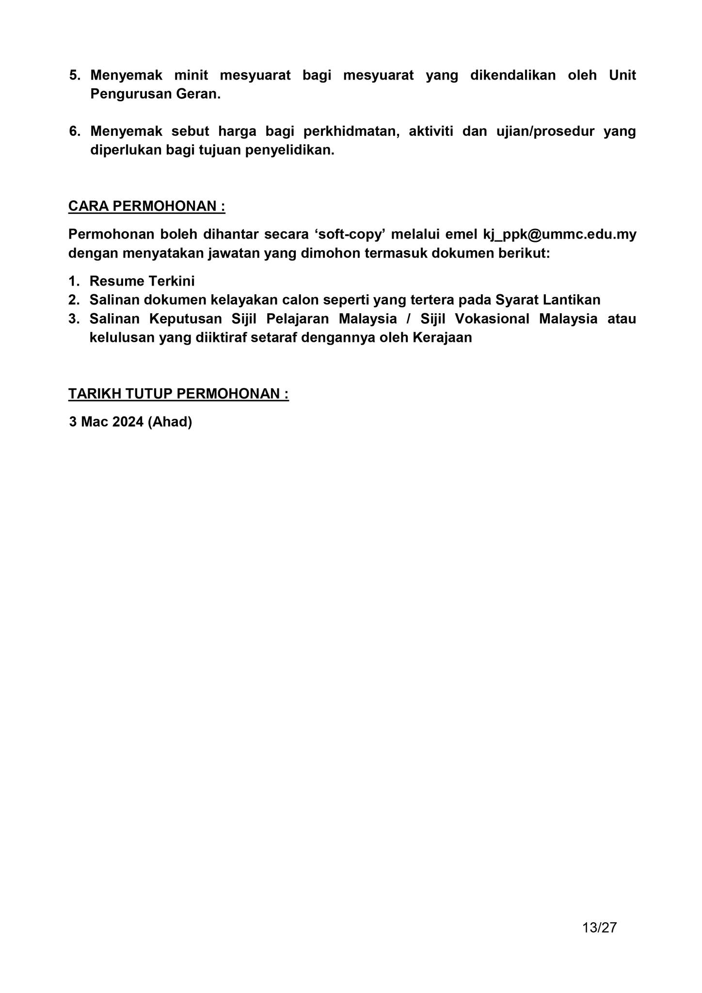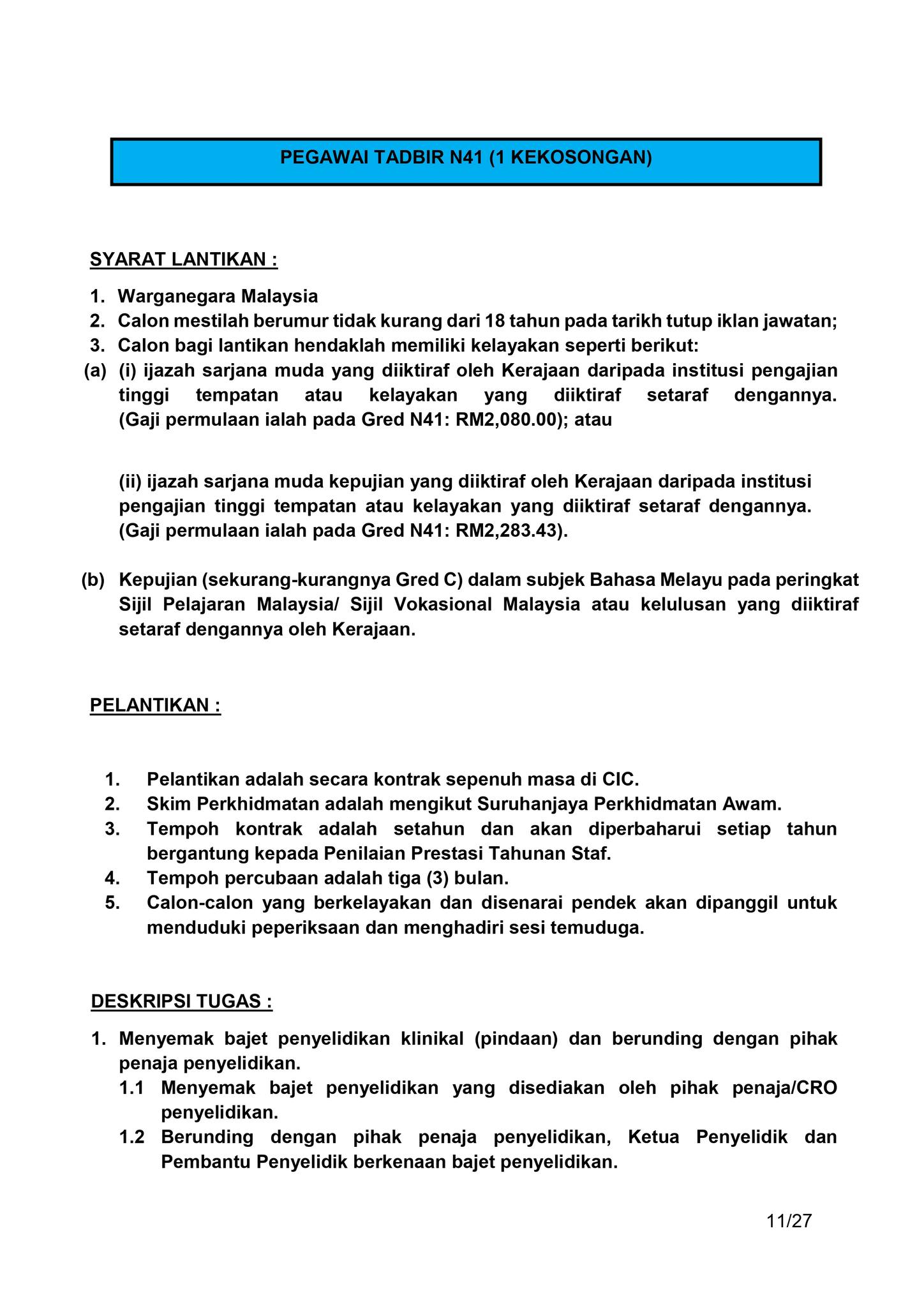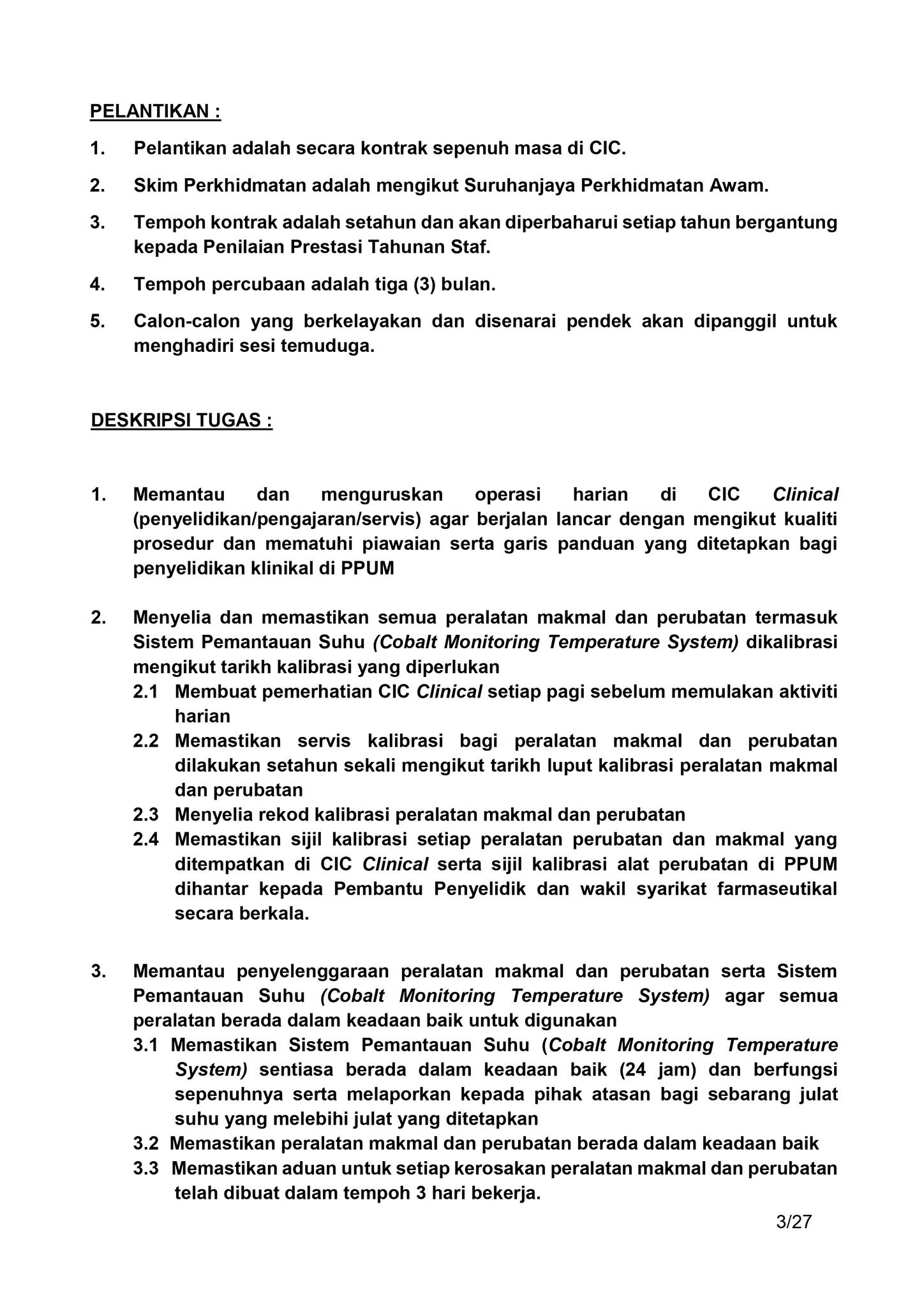 Iklan Jawatan Clinical Investigation Centre (CIC) University Of Malaya Medical Centre