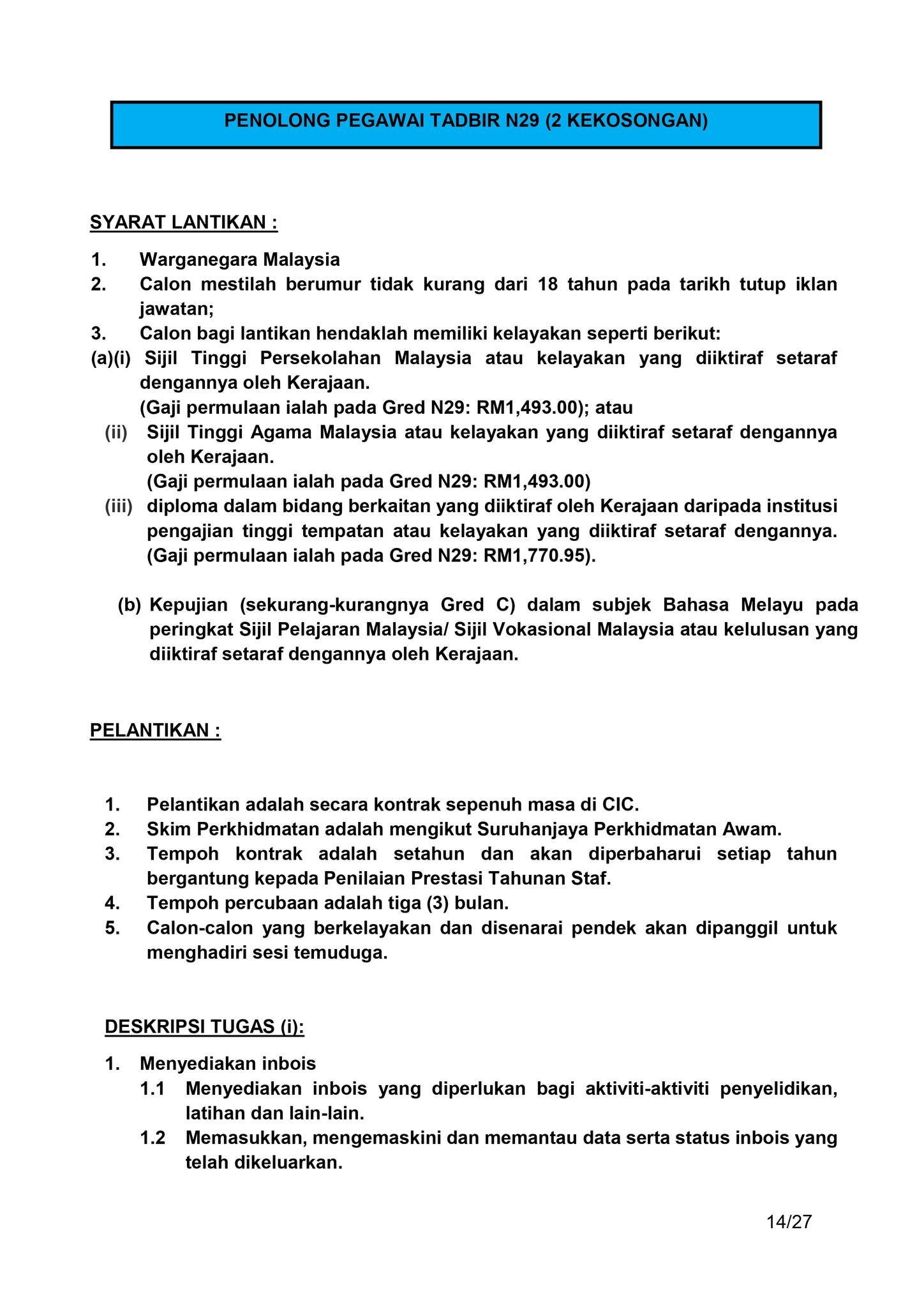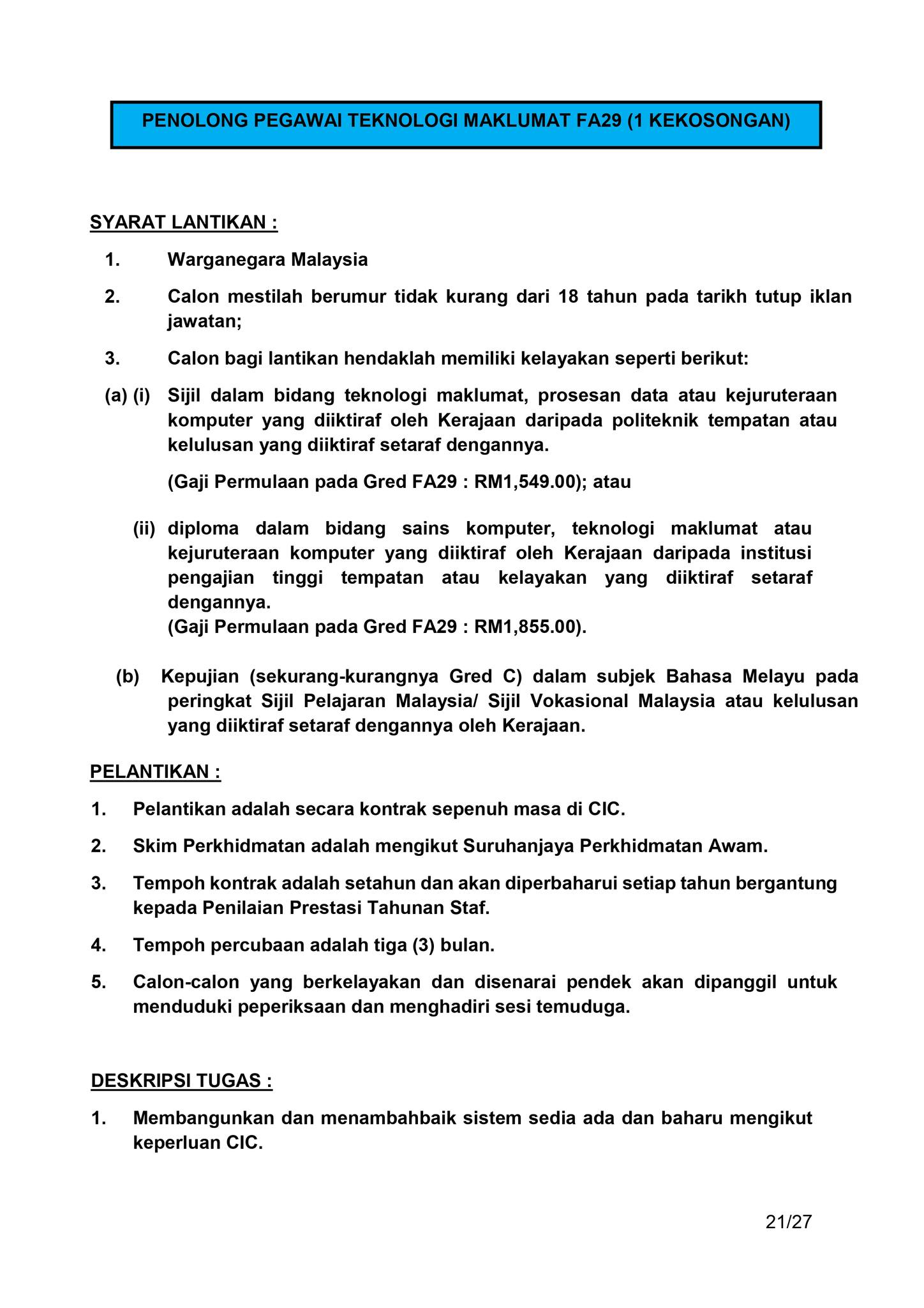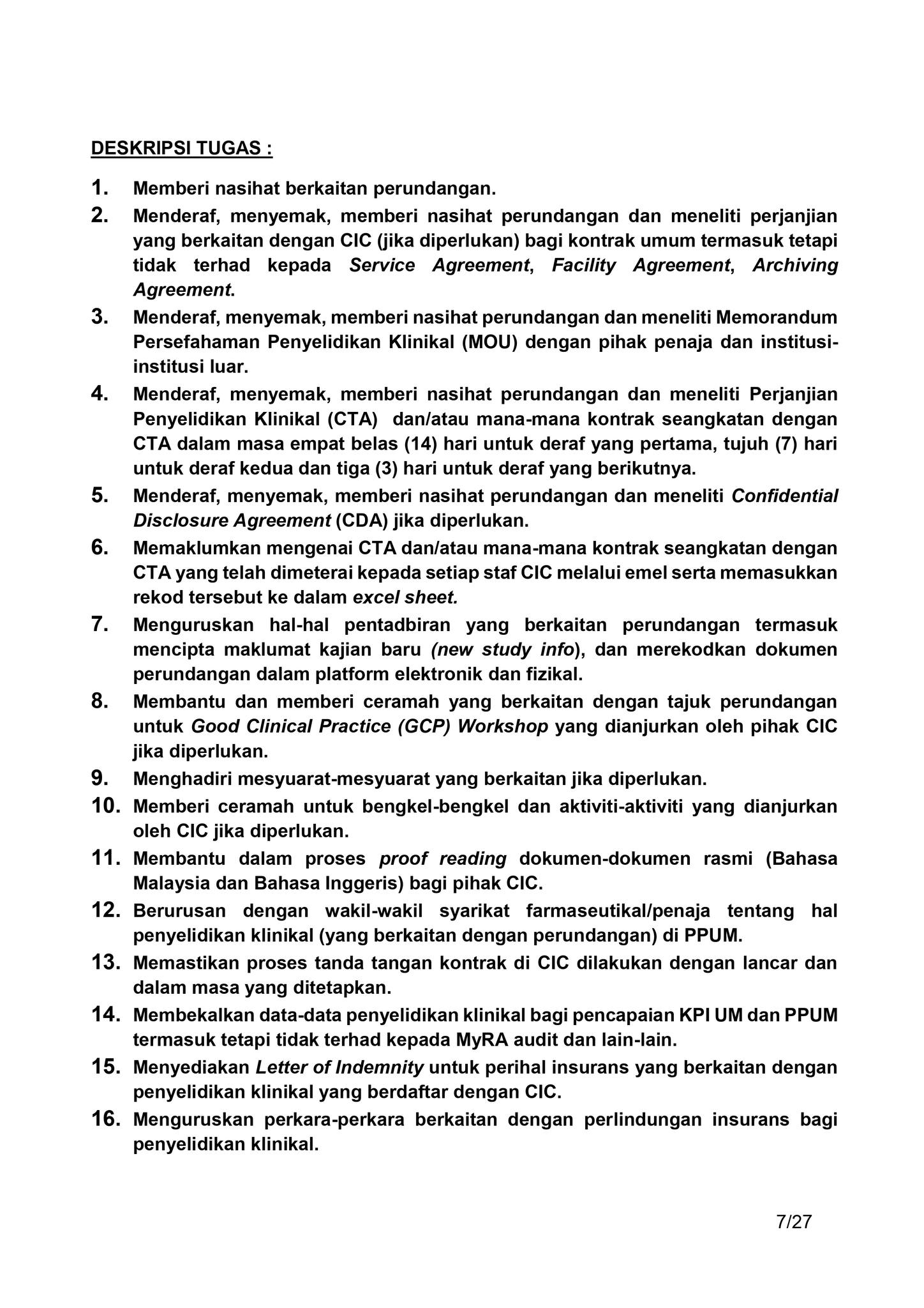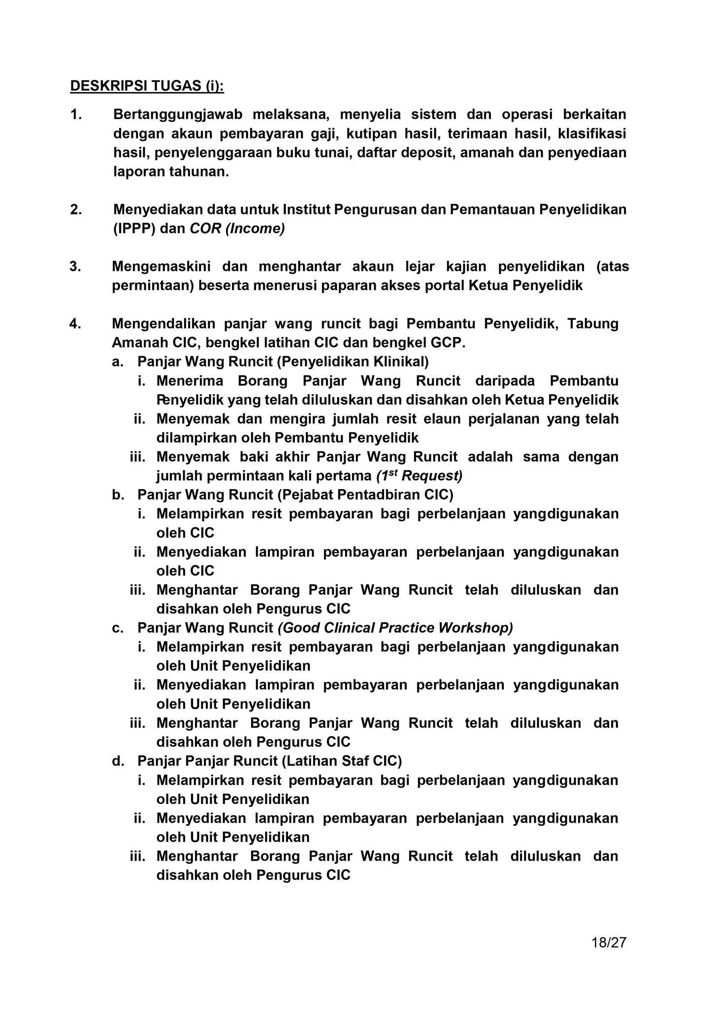 Iklan Jawatan Clinical Investigation Centre (CIC) University Of Malaya Medical Centre