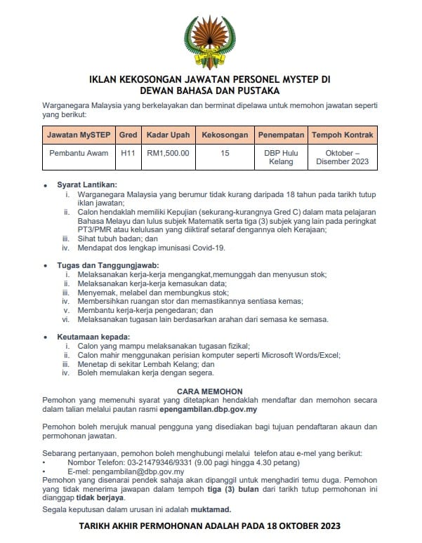 Iklan Jawatan Dewan Bahasa dan Pustaka (DBP)