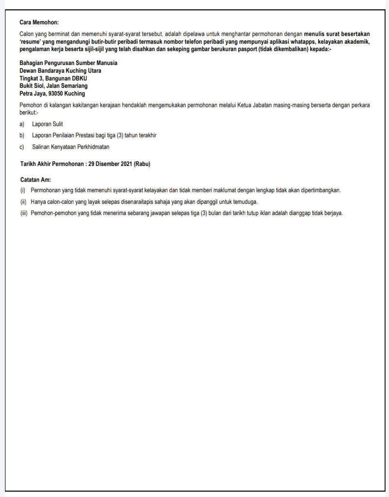 Iklan Jawatan Dewan Bandaraya Kuching Utara (DBKU)