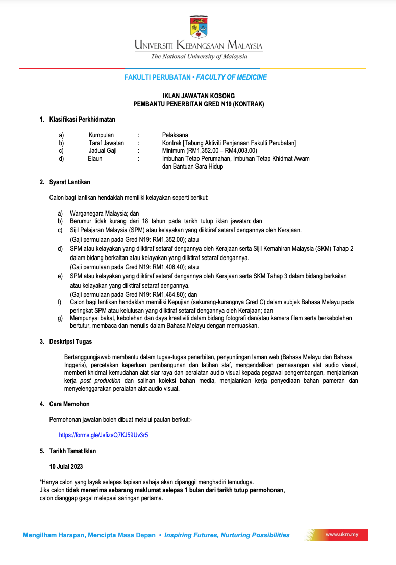 Iklan Jawatan Fakulti Perubatan Fakulti Perubatan,Universiti Kebangsaan Malaysia (UKM)