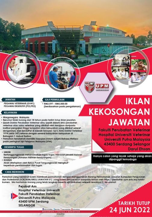 Iklan Jawatan Fakulti Perubatan Veterinar Universiti Putra Malaysia