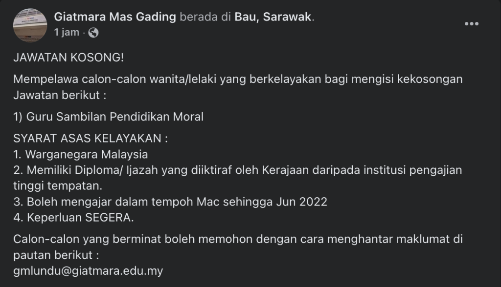 Iklan Jawatan Giatmara Mas Gading
