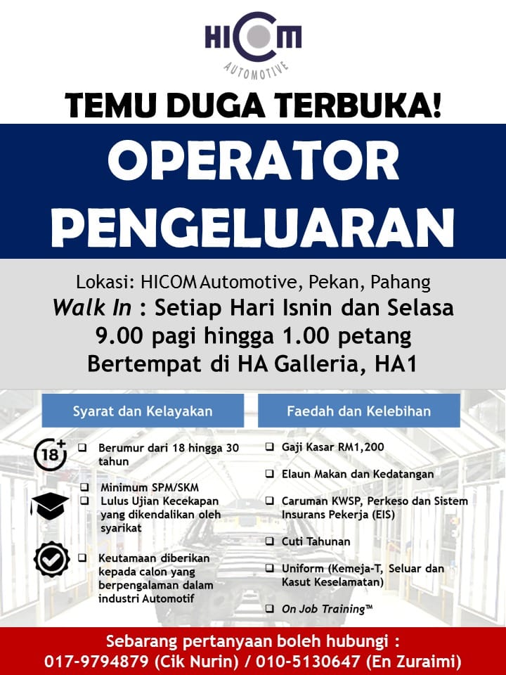 Iklan Jawatan HICOM Automotive Manufacturers (Malaysia) Sdn Bhd