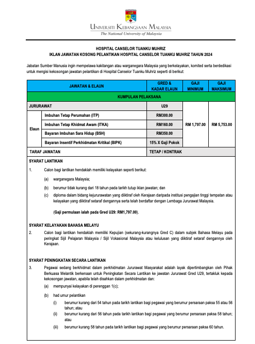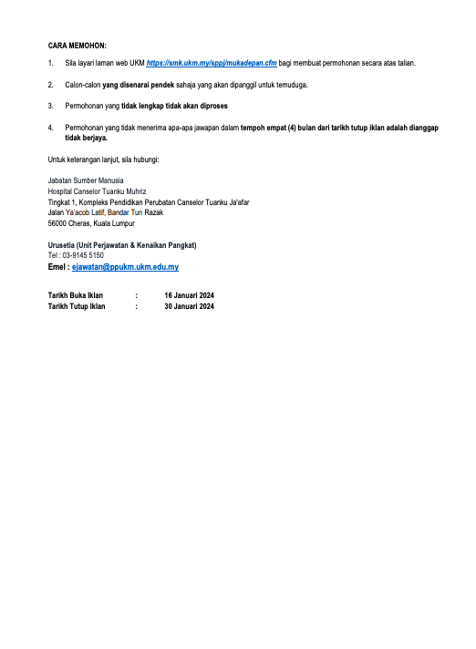 Iklan Jawatan Hospital Canselor Tuanku Muhriz