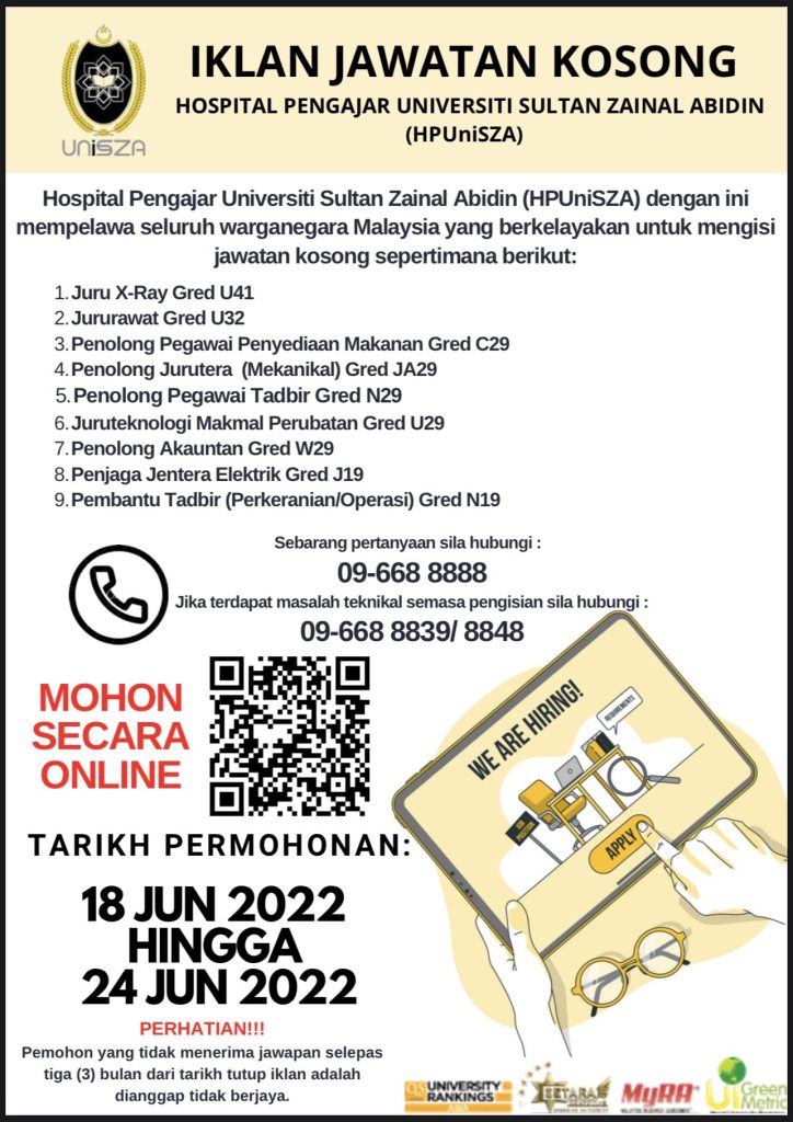 Iklan Jawatan Hospital Pengajar Universiti Sultan Zainal Abidin (HPUNISZA)