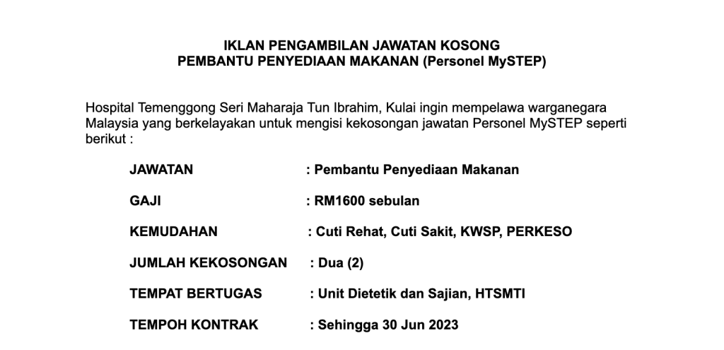 Iklan Jawatan Hospital Temenggong Seri Maharaja Tun Ibrahim