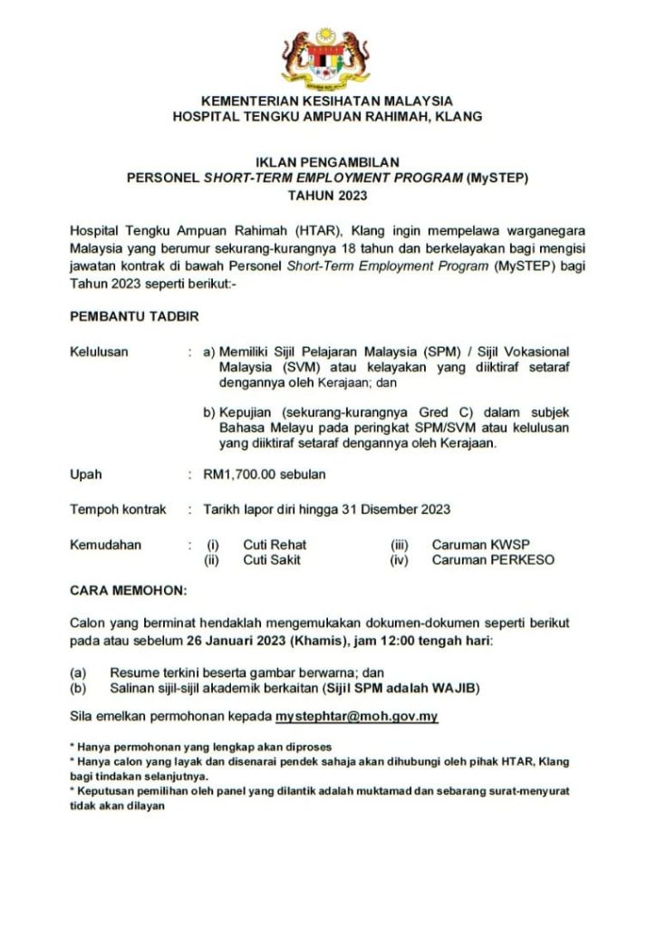Iklan Jawatan Hospital Tengku Ampuan Rahimah