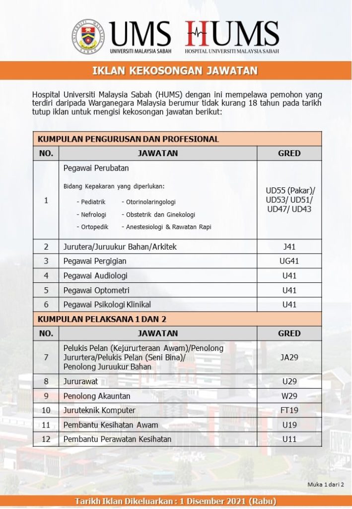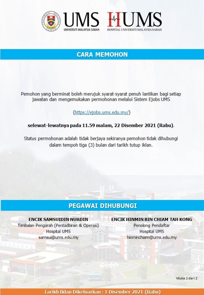 Iklan Jawatan Hospital Universiti Malaysia Sabah (HUMS)