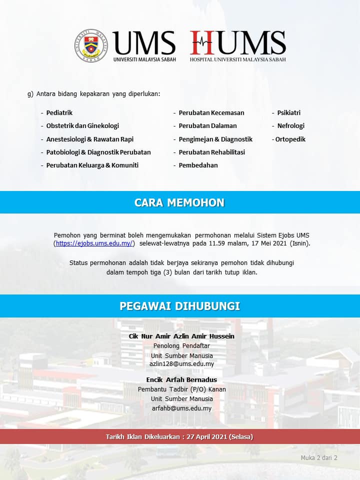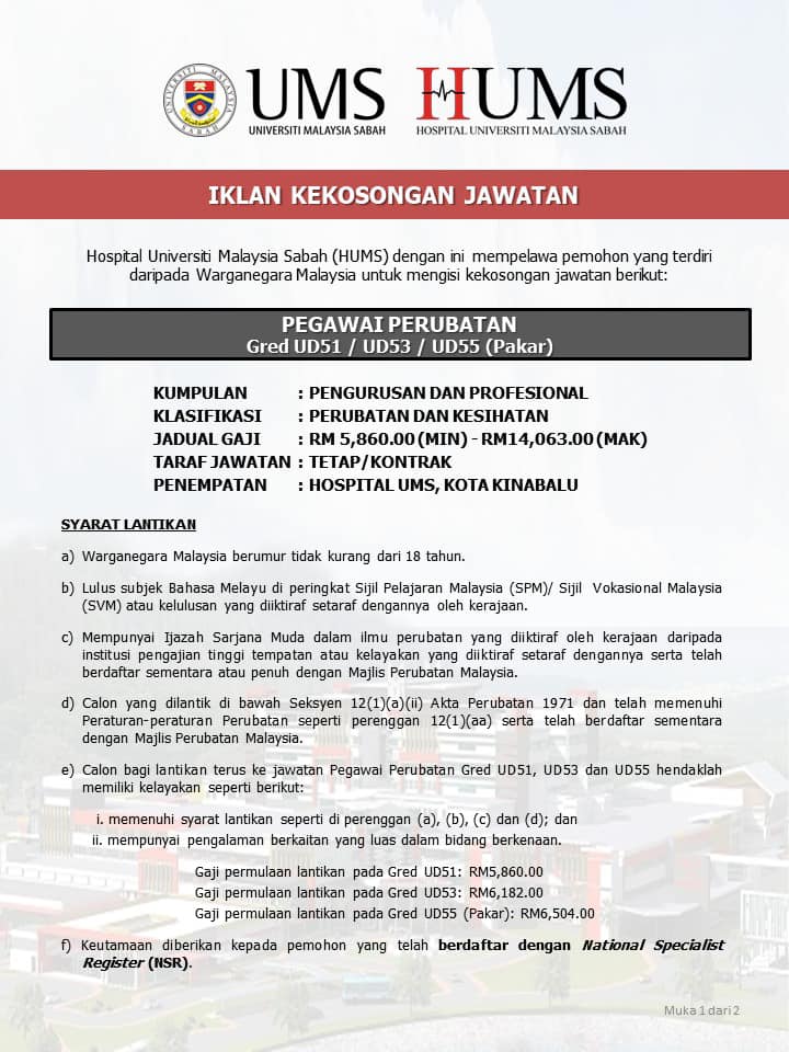 Iklan Jawatan Hospital Universiti Malaysia Sabah (HUMS)