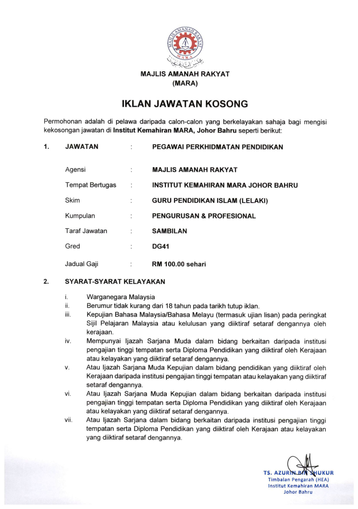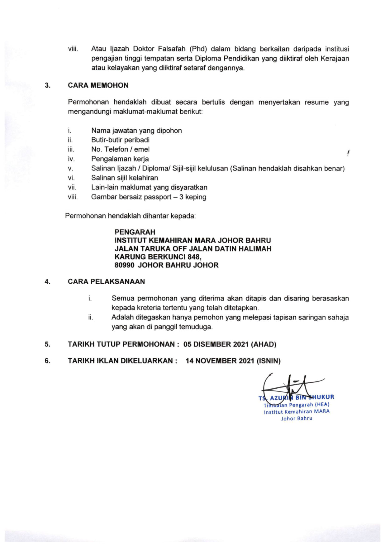 Iklan Jawatan Institut Kemahiran MARA (IKM)