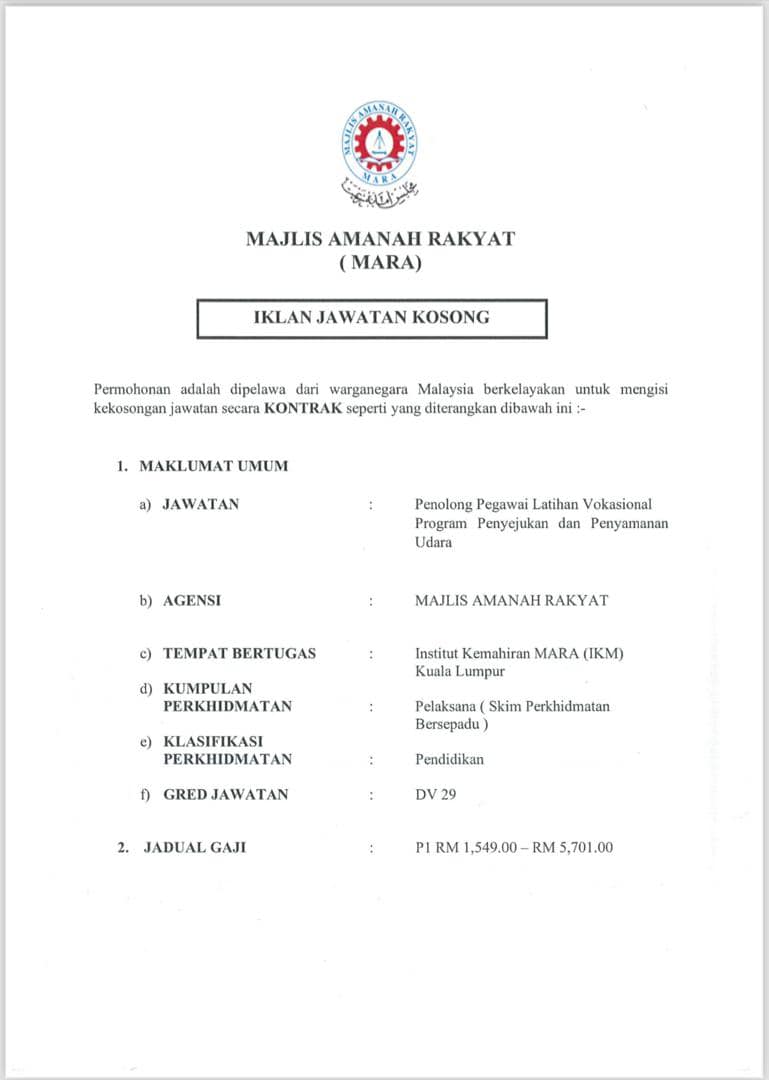 Iklan Jawatan Institut Kemahiran Mara (IKM)
