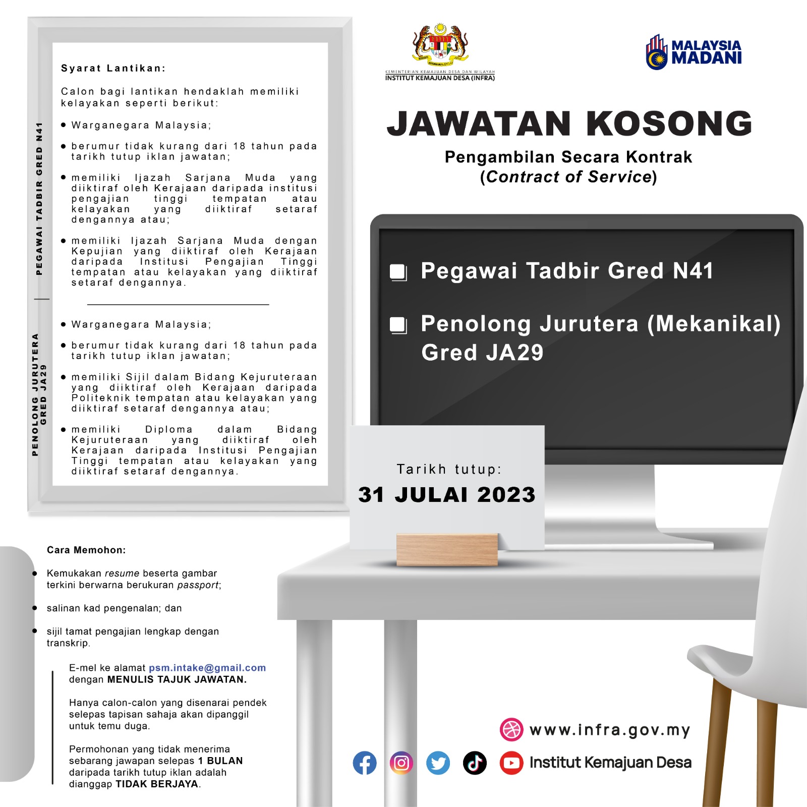 Iklan Jawatan Institut Kemajuan Desa (INFRA)