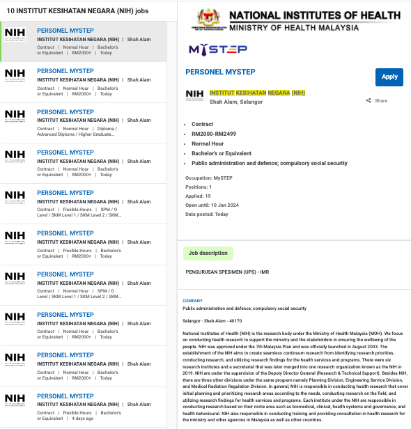 Iklan Jawatan Institut Kesihatan Negara (NIH)