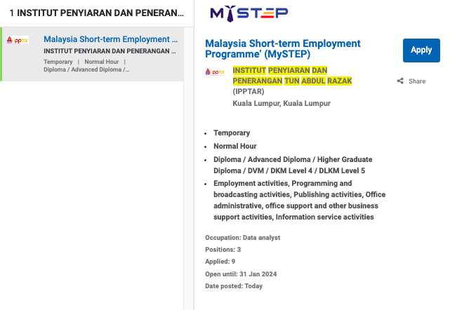 Iklan Jawatan Institut Penyiaran Dan Penerangan Tun Abdul Razak (IPPTAR)