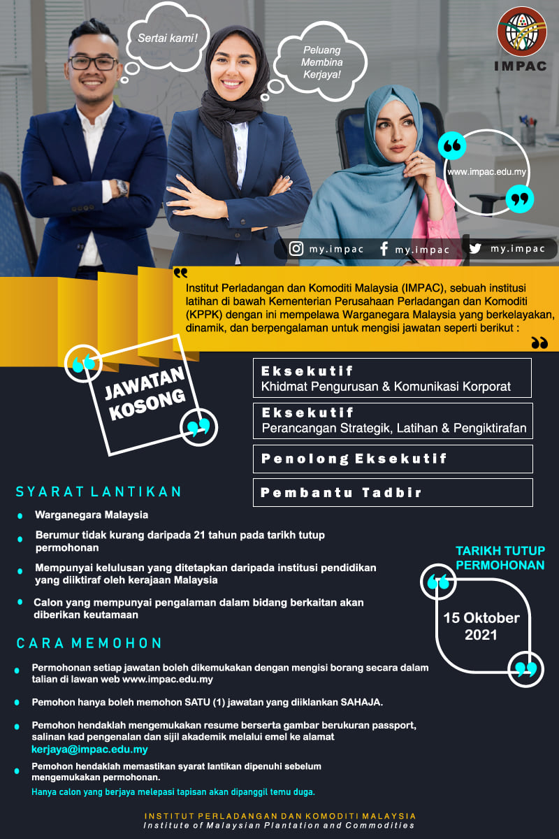 Iklan Jawatan Institut Perladangan dan Komoditi Malaysia (IMPAC)