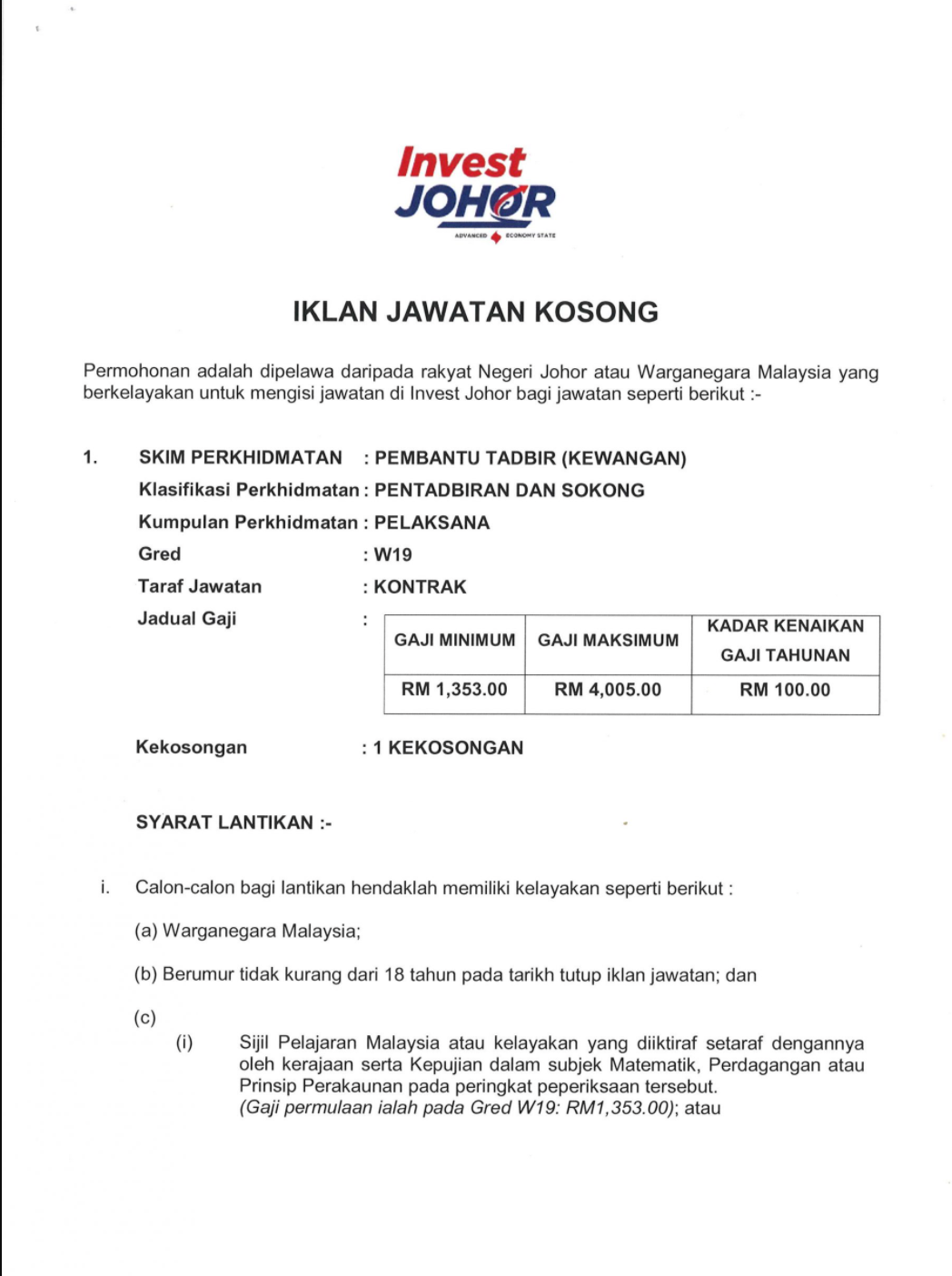 Iklan Jawatan Invest Johor