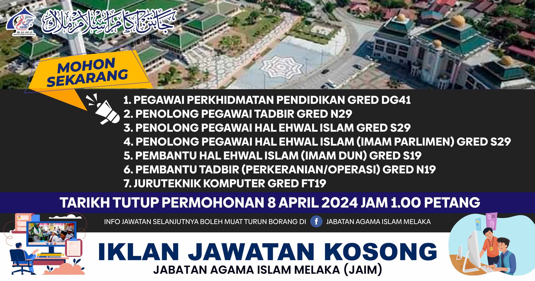 Iklan Jawatan Jabatan Agama Islam Melaka (JAIM)