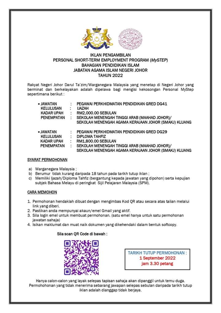 Iklan Jawatan Jabatan Agama Islam Negeri Johor