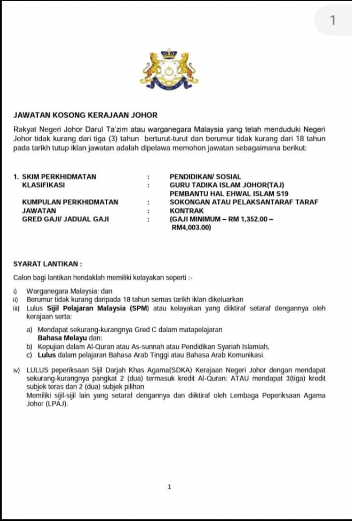 Iklan Jawatan Jabatan Agama Islam Negeri Johor