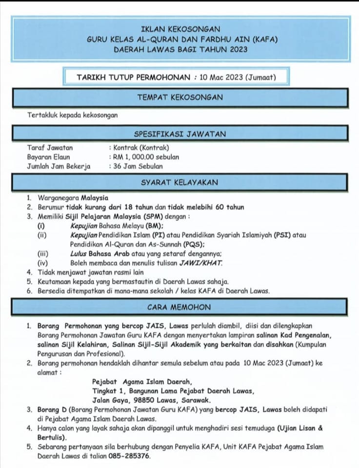 Iklan Jawatan Jabatan Agama Islam Sarawak