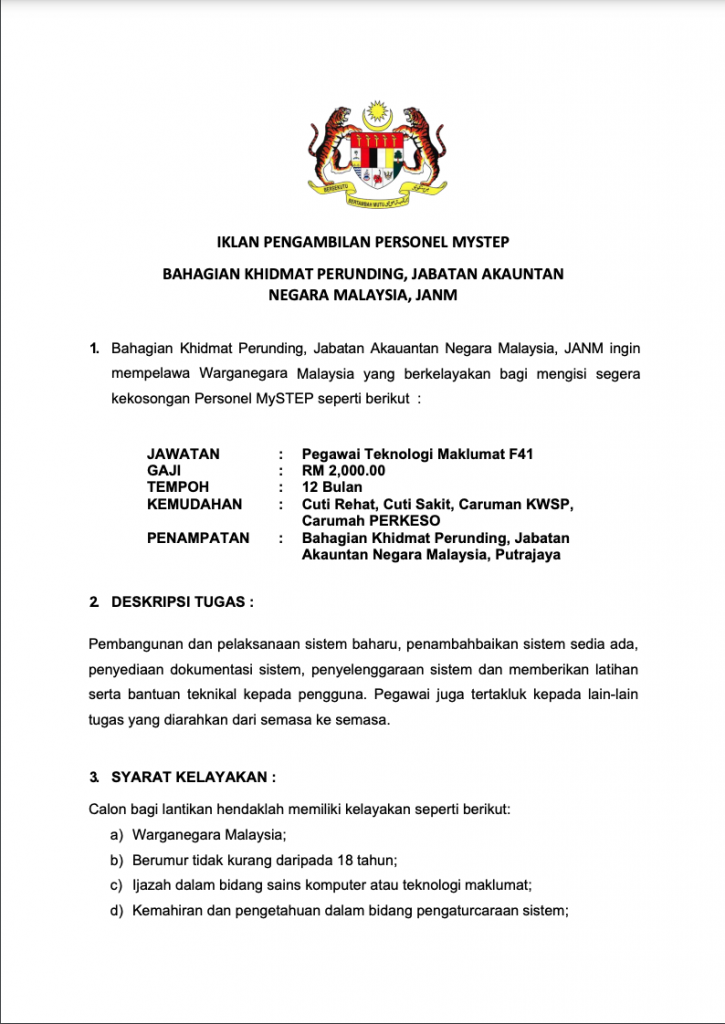 Iklan Jawatan Jabatan Akauntan Negara Malaysia