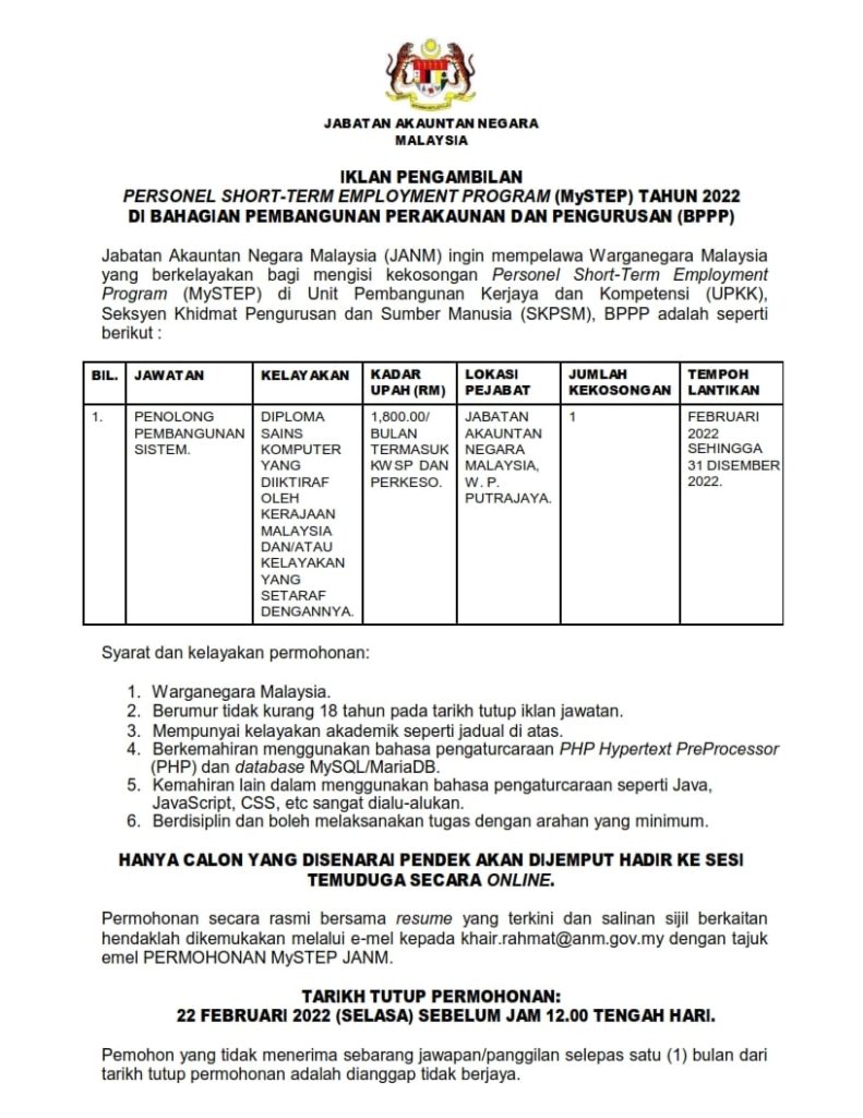 Iklan Jawatan Jabatan Akauntan Negara Malaysia