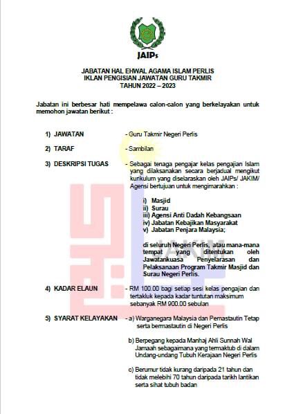 Iklan Jawatan Jabatan Hal Ehwal Islam Perlis