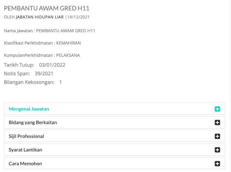 Iklan Jawatan Jabatan Hidupan Liar