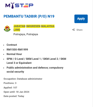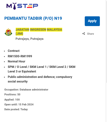 Iklan Jawatan Jabatan Imigresen Malaysia