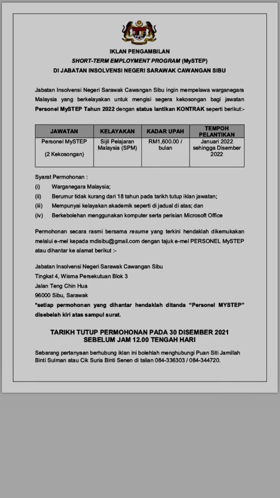 Iklan Jawatan Jabatan Insolvensi Negeri