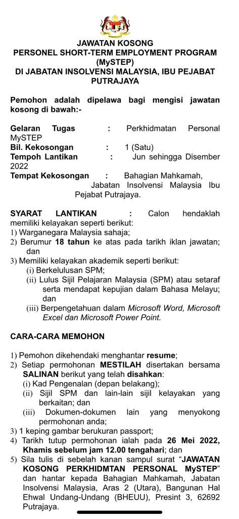 Iklan Jawatan Jabatan Insolvensi Malaysia