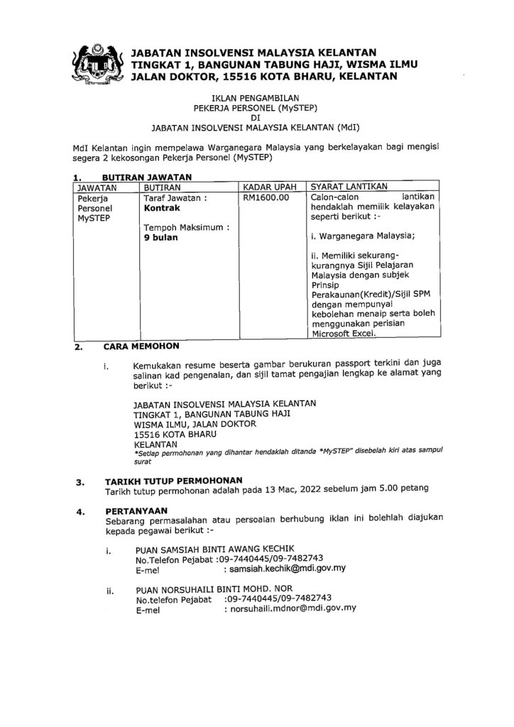 Iklan Jawatan Jabatan Insolvesi Malaysia