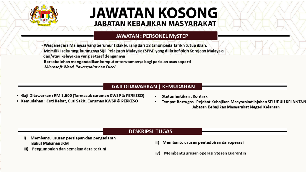 Iklan Jawatan Jabatan Kebajikan Masyarakat Negeri Kelantan